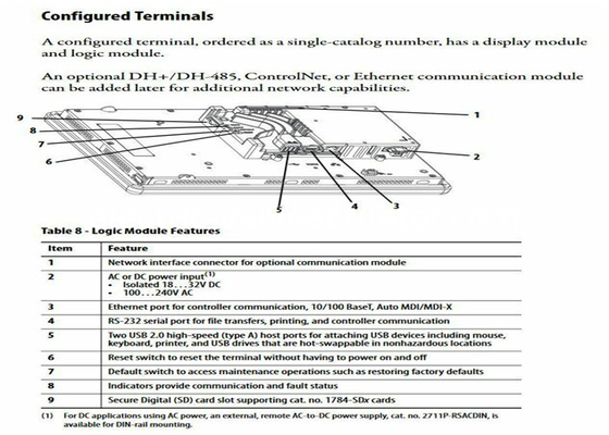 बिजली की खपत, डीसी: | 35W अधिकतम (1.46A पर 24V DC) | मॉडल: | 2711P-T7C22D8S |